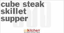 | Cube Steak Skillet Supper Recipe | CDKitchen.com beef steak, mushroom soup, oil, pepper, paprika, potato, onion, green beans, salt, flour A recipe for Cube Steak Skillet Supper made with flour, salt, black pepper, cube steaks, oil, onion, potatoes, green beans, mushroom soup In a large resalable plastic bag, combine flour, salt and pepp...