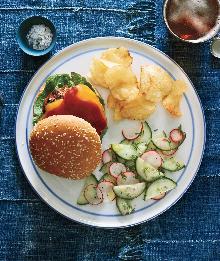 | Barbecue Turkey Burgers With Cucumber Salad Recipe | Real Simple potato chip, ground turkey, olive oil, pepper, dill, radish, cucumber, lettuce, barbecue sauce, salt, cheddar cheese, bread, lemon juice Get the recipe for Barbecue Turkey Burgers With Cucumber Salad. Instructions Checklist Step 1 Combine the cucumber, radishes, lemon juice, dill, 2 tablespoons of the oil, and 1 teaspoon each salt an...