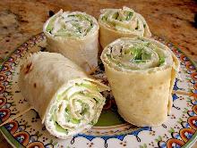 | Cucumber Roll Ups Recipe | SparkRecipes ranch dressing, dill, cucumber, mayonnaise, cream cheese, tortilla Makes 8 servings. In a medium bowl, mix together the cream cheese, mayonnaise and Ranch dressing mix. Refrigerate for at least 6 hours, or preferably overnight. Spread the cream cheese mixture onto th...
