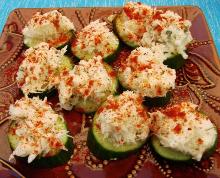 | Stuffed Cucumber Slices Recipe - Food.com blue cheese, cherry pepper, parsley, onion, cucumber, cream cheese Excellent appetizer dish that is quick and easy. Perfect for holiday gatherings. Serving Size: 1 (400) g Servings Per Recipe: 6 AMT. PER SERVING % DAILY VALUE Calories: 139 Calories from Fat 57 g ...
