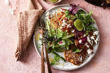 | Lentil and zucchini fritters with cucumber salad recipe - Recipes - delicious.com.au feta cheese, chili dried/powder, salad, sunflower oil, mint, coriander seed, red chili, cumin, lentil, lime, spring onion, zucchini/courgette, cucumber, eggs, self raising flour, milk “Corn could stand in for zucchini here,” says Silvia Colloca. 1. Place the lentils in a large bowl. Crush with a potato masher until coarsely mashed. 2. Place flour in another bowl and ...