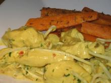 | Coconut Curry Chicken Recipe | MyRecipes butter, chicken breast, curry powder, coconut, salt Prepare this easy and delicious curried chicken breast entree when you need dinner in a hurry. Vary the sweetness with the type of coconut you choose. Instructions Checklist Step 1 Rinse chicken and...