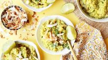 | Chicken & Coconut curry chicken breast, chicken stock, coconut oil, curry powder, paprika, ginger root, coriander seed, coriander, cumin, coconut cream, lime, onion, garlic, salt 1. To make the curry, heat a large pot over high heat. 2. Cube the chicken breasts then saute the chicken in coconut oil. 3. When the chicken is golden brown, remove from the pot and set aside. 4. Sau...