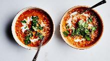 | Curried Lentil, Tomato, and Coconut Soup Recipe | Bon Appetit chili dried/powder, olive oil, coconut oil, curry powder, pepper, ginger root, coriander, lentil, coconut milk, lime, onion, garlic, tomato, salt A creamy, curried soup from Yotam Ottolenghi that you can make on a weeknight, no sweat. Adjust the curry powder depending on how much heat you want. Step 1 Heat oil in a medium saucepan over medium....