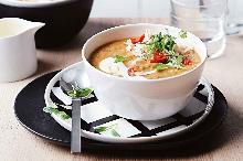 | Fiery Tofu and Coconut Curry Soup Recipe | MyRecipes curry paste, vegetable stock, canola oil, ginger root, coriander leaf, coconut milk, carrot, garlic, green beans, soy sauce, soft tofu, brown sugar, lime juice This spicy tofu soup incorporates common Thai cuisine ingredients, such as ginger, soy sauce, red curry paste, coconut milk, and cilantro. Instructions Checklist Step 1 Heat oil in a large saucepan ...