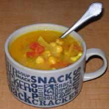 | African Coconut Curried Chickpea Soup Recipe - Food.com red bell pepper, brown rice, vegetable stock, olive oil, curry powder, pepper, coriander, jalapeno, chickpea, coconut milk, onion, garlic, tomato, salt I broke my ankle and had to stay off my feet for three long months. This is one of the recipes my son made to stock my freezer. It's a wonderful, fragrant vegetarian soup. You can add some shredde...