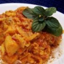Baltic Fish Curry Recipe tomato paste, oil, turmeric, paprika, mint, ginger root, coriander leaf, chili pepper, cumin, coconut cream, onion, garlic, tomato, haddock, cod A spicy yellow fish curry that's great served over jasmine or basmati rice. Coconut and tomatoes make a delicious velvety sauce. Heat oil in a large pan, and cook onion, garlic, ginger, chilli and...