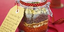 | Curried Lentil Soup - Holiday Gifts - Recipes curry powder, parsley, dried onion, dried garlic, lentil, apple, salt Dried lentils and seasonings are layered into a beribboned mason jar to create this inexpensive, one-of-a-kind holiday gift. In bottom of each glass jar, place 8 ounces red lentils; top with 1 1/2 tea...