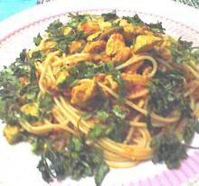 | Healthy Indian Spaghetti In Yellow Curry Sauce Recipe by Viji.Chettiar | ifood.tv chicken breast, chili dried/powder, oil, curry powder, tamarind, coriander seed, coriander leaf, dried onion, button mushroom/champignon, onion, garlic, tomato, salt, pasta, water A low fat and packed with nutrients version of my favorite spaghetti and chicken dish! GETTING READY: 1)Cook the spaghetti in salted water and drain well, set this aside. 2)Roughly chop the onions a...