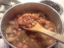 | Curried Vegetable Stew - Recipe #9011 - Foodgeeks turmeric, ginger root, coriander, cayenne pepper, cinnamon, cumin, peas, chickpea, potato, carrot, onion, garlic, cauliflower, soy sauce, tomato juice, water Try this recipe for Curried Vegetable Stew on Foodgeeks.com Place beans and water in a large pot. Bring to a boil, remove from heat, cover and let rest 1 hour. Return to heat and simmer 1 1/2 hours. T...