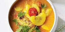 | Curried Chicken Stew Recipe | EatingWell chicken thigh, chicken stock, cooking spray, curry powder, ginger root, coriander leaf, coconut milk, carrot, onion, garlic, salt, lemon juice Short on time? Consider this slow-cooked chicken stew recipe. Spend just 20 minutes prepping in the morning and you'll come home to a hearty dish. Serve it over basmati rice or with a slice of cru...