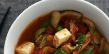 | Curried Tomato Soup Recipe - Food.com curry paste, olive oil, basil, coconut milk, paddy straw mushroom, onion, tomato, firm tofu, brown sugar, lime juice Posting in anticipation of those garden tomatoes & basil! May add a pound of fresh shrimp & cook until just opaque before adding basil. From Taste of Thai. Serving Size: 1 (1990) g Servings P...