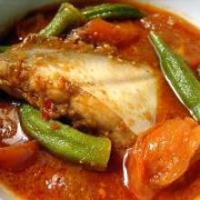 | Curried Okra With Tomato Recipe - Food.com vegetable stock, chicken stock, peanut oil, canola oil, curry powder, pepper, coriander seed, coriander leaf, green chili, onion, garlic, okra, tomato, salt If you like it hot, use as many of the hot chilies as you like, or leave them out. With some grilled chicken or fish or shrimp, makes a very nice meal. Cooking time does not include defrosting time if...