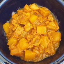 | Curried Seitan - The Veggie Table seitan, vegetable stock, cornstarch, sesame seed oil, peanut oil, curry powder, yarrow, pepper, potato, onion, garlic, beef, soy sauce, salt, sugar, water There's a huge variety of curry recipes from a number of different cuisines. This vegan version of Chinese curried beef and potatoes is quick and easy. - The Veggie Table Press the seitan with pap...