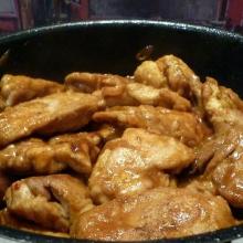 | Curried Chicken Thighs Recipe by fast.cook | ifood.tv chicken thigh, oil, curry powder, cumin, dried ginger, onion, salt, sour cream, water Cut chicken thighs into 1-inch strips. Heat oil in 10-inch skillet until hot. Cook chicken in oil over medium-high heat until brown on all sides. Sprinkle with remaining ingredients except sour cre...