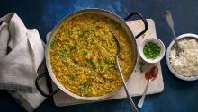 | Easy lentil curry recipe - BBC Food tomato paste, chapattis, vegetable stock, olive oil, curry powder, turmeric, pepper, cumin, cardamom, lentil, spring onion, garlic, salt, double cream This is one of the easiest lentil curries around – for a quick, tasty and healthy dal, this is your go-to! Heat the oil in a frying pan over a medium heat. Add the onion and garlic and fry for 2...