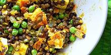| Curried Lentils with Paneer Recipe | MyRecipes paneer, olive oil, curry powder, cumin, lentil, peas, carrot, onion, garlic, salt, firm tofu Curried Lentils with Paneer is a decadent vegetarian main dish that can be on your table in 20 minutes. Instructions Checklist Step 1 Heat 1 tbsp. oil in a large frying pan over medium-high heat. Ad...