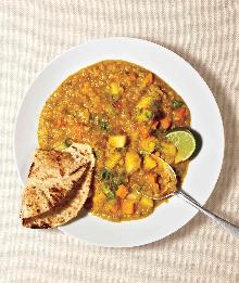 | Red Lentil Curry Recipe | Real Simple naan bread, vegetable stock, canola oil, curry powder, pepper, ginger root, lentil, lime, potato, carrot, spring onion, garlic, salt Get the recipe for Red Lentil Curry. Instructions Checklist Step 1 Heat the oil in a large saucepan over medium-high heat. Add the ginger, garlic, and scallion whites and cook, stirring frequently, ...