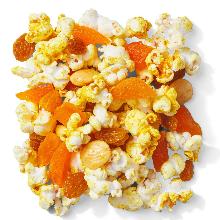 Curried Popcorn Toss butter, popcorn, almond, curry powder, cayenne pepper, raisin, apricot Say hello to your new favorite movie night treat. This healthy snack packs the perfect balance of sweet and savory (without any added sugars). In a small bowl combine 2 Tbsp. melted butter, 1 tsp. cur...