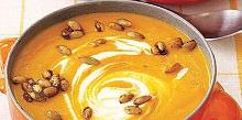 | Ginger-Curry Pumpkin Soup Culinary Cafe pumpkin seeds, chicken stock, almond, curry powder, ginger root, cayenne pepper, pumpkin, salt 1. In a medium saucepan combine pumpkin, stock, ginger, and curry powder. Bring to a boil. Reduce heat and simmer 3 minutes. Season to taste with salt and cayenne. 2. Ladle soup into serving bowls and...
