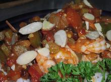 | Barbados Shrimp Curry Recipe - Food.com butter, tomato sauce, tomato paste, almond, peanut, curry powder, thyme, pepper, marjoram, lemon, raisin, onion, garlic, celery, sweet pepper, shrimp, worcestershire sauce, salt, sugar Serve this recipe over Basmati rice Suggested wine: Sauvignon Blanc. Serving Size: 1 (394) g Servings Per Recipe: 6 AMT. PER SERVING % DAILY VALUE Calories: 554.5 Calories from Fat 305 g 55 % Tot...