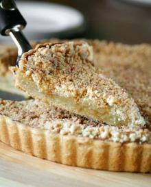 | Custard Tart with Caramelised Apple | Australia's Best Recipes butter, vanilla custard, puff pastry, lemon peel, cornstarch, vanilla extract, cinnamon, apple, eggs, sugar, lemon juice This custard tart is sweet and a little bit sour (from lemon juice). It is perfect for winter dessert, because It can be served warm or cold. Preheat oven 200C. Lay a pastry sheet on bench and sprink...