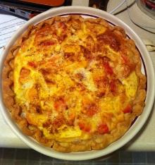 | Peach Custard Pie Recipe - Baking.Food.com butter, tapioca, cinnamon, peach, eggs, pastry, sugar This recipe is indeed easy as pie. And it is delicious! I have always used fresh peaches but I'm sure canned peaches, well drained, would work well, too. Serving Size: 1 (208) g Servings Per Reci...