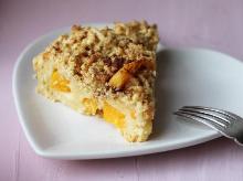 | Peach Custard Pie With Streusel Topping Recipe - Food.com butter, egg yolks, vanilla extract, cinnamon, peach, salt, fat, sugar, sour cream, water, flour This pie is the best pie I have ever tasted. No Joke! I love this so much and my peach crazed hubby loves it even more! You can't go wrong with this yummy pie. The filling is just perfect and the ...