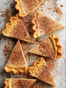 Snickerdoodle Custard Pie bittersweet chocolate, vanilla, nutmeg, cinnamon, eggs, salt, sugar, cocoa powder, half and half Snickerdoodle Custard Pie Preheat oven to 450 F. Let piecrust stand according to package directions. On a lightly floured surface, roll piecrust into a 13-inch circle. Transfer to a 9-inch pie plate; ...