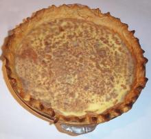 | French Vanilla Custard Pie Recipe butter, custard, vanilla, nutmeg, eggs, salt, sugar, milk, water, flour This delicous and comforting pie can be quite elegant served with fresh fruit and whipped cream. Skip the crust and bake it in ramekins for simple French Custard! %) Pulse flour, sugar, salt and butte...