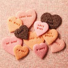 Conversation Heart Cut-Out Cookies butter, vanilla, eggs, salt, baking powder, sugar, red food coloring, flour Tell loved ones exactly how you feel with these customizeable cut-out cookies. Cut out the heart cookies and add your message. It's our cutest Valentine's Day dessert ever! Preheat oven to 375...