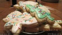 | Christmas Cut-Out Cookies Recipe butter, vanilla extract, eggs, salt, baking powder, fat, sugar, milk, flour Beat butter, shortening and sugar until light. Beat in egg, milk and vanilla. Sift together flour, baking powder and salt. Beat dry ingredients into moist a little at a time. Chill for 3 hours. P...
