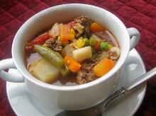| Hamburger Dump Soup Recipe - Food.com beef stock, vegetables, ground beef, peas, potato, carrot, garlic, green beans, tomato, sweetcorn, water I like easy recipes and this recipe is very easy. It also very good!! Love it anytime but especially during the cold months. Serving Size: 1 (455) g Servings Per Recipe: 6 AMT. PER SERVING % DAILY V...
