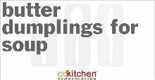 | Butter Dumplings For Soup Recipe | CDKitchen.com butter, chicken stock, beef stock, nutmeg, eggs, salt, flour A recipe for Butter Dumplings For Soup made with eggs, all-purpose flour, butter, salt, nutmeg, beef or chicken In a medium bowl, beat the eggs. Add the flour and mix. Into the flour mixture beat the ...