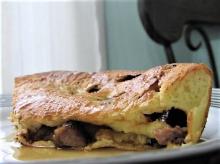 | Chocolate Chip Dutch Baby Recipe | MyRecipes butter, banana, eggs, salt, sugar, whipped topping, chocolate, kahlua, milk, flour A Dutch baby is a puffy, baked pancake. A preheated cast-iron skillet enables the batter to start cooking immediately and causes it to puff. Cook the bananas while the Dutch baby is in the oven, so th...