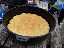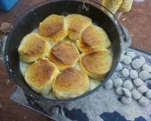 | Dutch Oven Biscuits evaporated milk, salt, baking powder, fat, flour Add diluted evaporated milk sufficient to make batter that is workable, i.e., that can be pinched off without sticking to the hands. Work all of the above ingredients together on a board with the hand...