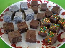 | Chocolate Fudge Squares (Microwave, Super-Easy!) Recipe - Food.com butter, icing sugar, desiccated coconut, golden syrup, baking powder, sugar, cocoa powder, water, flour These yummy fudge squares are from a kids microwave cookbook I got when I was a kid. I used to know the recipe off by heart because we made them so often. They are always really popular and I have han...