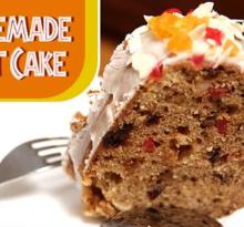 | Homemade Fruit Cake / Easy Eggless Cake Recipe / Divine Taste With Anushruti Recipe Video by Rajshri butter, vanilla custard, cornstarch, bicarbonate of soda, vanilla extract, baking powder, sugar, milk, flour Learn how to make fruit cake, a delightful cake recipe for Christmas by Anushruti. GETTING READY: 1. Prepare a 7” round cake tin by greasing it well with oil or butter and lightly dusting it wi...