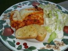 | Lasagna Made Easy Recipe - Food.com spaghetti sauce, ground beef, ricotta cheese, parsley, eggs, parmesan cheese, mozzarella cheese, pasta, water Food & Family Winter 2007, Page 11 Serving Size: 1 (183) g Servings Per Recipe: 12 AMT. PER SERVING % DAILY VALUE Calories: 372.7 Calories from Fat 172 g 46 % Total Fat 19.2 g 29 % Saturated...