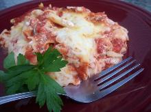 | Easy Ravioli Lasagna Recipe - Food.com butter oil, pasta parcels, spaghetti sauce, ground beef, olive oil, pepper, dried garlic, mushrooms, garlic, salt, parmesan cheese, mozzarella cheese Serving Size: 1 (113) g Servings Per Recipe: 12 AMT. PER SERVING % DAILY VALUE Calories: 245.2 Calories from Fat 141 g 58 % Total Fat 15.8 g 24 % Saturated Fat 7.5 g 37 % Cholesterol 54 mg 18 %...