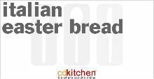 | Italian Easter Bread Recipe - Food.com butter, candied fruit, yeast, almond, vanilla, anise, eggs, salt, sugar, milk It's a typical Italian recipes served usually during Easter. It' healthy and low calories. Serving Size: 1 (202) g Servings Per Recipe: 4 AMT. PER SERVING % DAILY VALUE Calories: 464 Calor...
