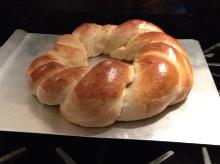 | Easter Bread – Recipes Network yeast, salt, water, flour Step 1 Preheat oven to 350 degrees. Mix together flour, water, yeast and salt. Form into a large donut shape. Place a large bowl inside the hole so it doesn't close up while baking. Place whole e...