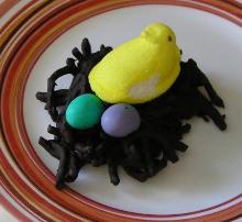 | Easter Egg Nests Recipe - Food.com oil, noodles, jelly/jell-o, chocolate These are so pretty as an Easter treat. I've seen these topped with Peeps as well. They're a fun, but messy project but who doesn't mind licking chocolate off of their fingers??? Choose yo...
