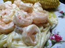 | Mmmm Easy Shrimp in Alfredo Sauce Recipe - Food.com butter, evaporated milk, olive oil, pepper, parsley, nutmeg, cayenne pepper, garlic, shrimp, salt, parmesan cheese, cream cheese, whipped cream This comes together fast after peeling the shrimp - in the time it takes to cook the pasta the meal is ready! It probably could serve 4 if antipasto & dinner salad is served - crusty warm chunks o...