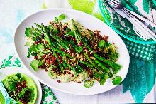 | Easy spring avocado salad recipe - Recipes - delicious.com.au pumpkin seeds, pomegranate molasses, kalamata olive, olive oil, almond, sumac, parsley, paprika, mint, green chili, cumin, lentil, avocado, lemon, pomegranate, garlic, asparagus, yogurt (plain) A fresh avocado salad in spring is pure perfection. 1. For the avocado yoghurt, place avocado, lemon juice, chilli and garlic in a bowl. Season with salt and pepper and mash with a fork until combine...