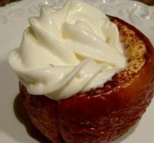 | Easy Baked Apples Recipe by Microwave.Lady | ifood.tv butter, cinnamon, chokeberry/cooking apple, vegetable fat spread, brown sugar, cream 1. Place apples in 2-quart (8 x 8) glass baking dish. Place 1 tablespoon brown sugar and 1 tablespoon butter in center of each apple. Sprinkle with cinnamon. 2. Microwave on HIGH for 8 to 9 minutes o...