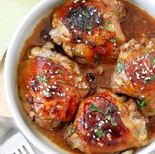 | Baked Honey Soy Chicken (Best Easy Recipe) - Rasa Malaysia chicken thigh, oyster sauce, sesame seed oil, white peppercorn, ginger root, garlic, soy sauce, salt, honey Baked Honey Soy Chicken - Moist, tender and juicy chicken thighs marinated with honey, soy sauce, ginger, garlic, and baked in oven. Super easy! Rinse the chicken thighs and pat dry with paper towels....