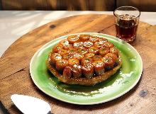 | Banana tarte tatin | Easy desserts | SBS Food butter, puff pastry, banana, eggs, sugar, icing, rum This is a quick and easy dessert, perfect served with thick crelashings of thick cream. 1. Preheat oven to 200 C. 2. Place the caster sugar in a 20 cm non-stick ovenproof pan. Heat gently so the suga...