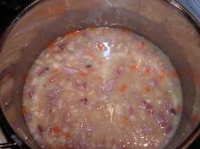 | Easy Fat Free Bean Soup Recipe | SparkRecipes split peas, thyme, pepper, dried onion, lentil, bean, tomato, salt, water Simple, inexpensive and healthy lunch for work. I make this on the weekend, then freeze in individual containers to take to work.. 1-Rinse beans,split peas, and lentils in strainer under running water...