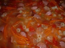 | Quick 'N Easy Pasta & Bean Soup Recipe - Food.com great northern bean, chicken stock, carrot, onion, garlic, celery, tomato, bacon, pasta A great pick me up for the cold days of winter and so easy and quick to put together. The bacon gives an added taste dimension. Serving Size: 1 (324) g Servings Per Recipe: 8 AMT. PER SERVING % DAIL...
